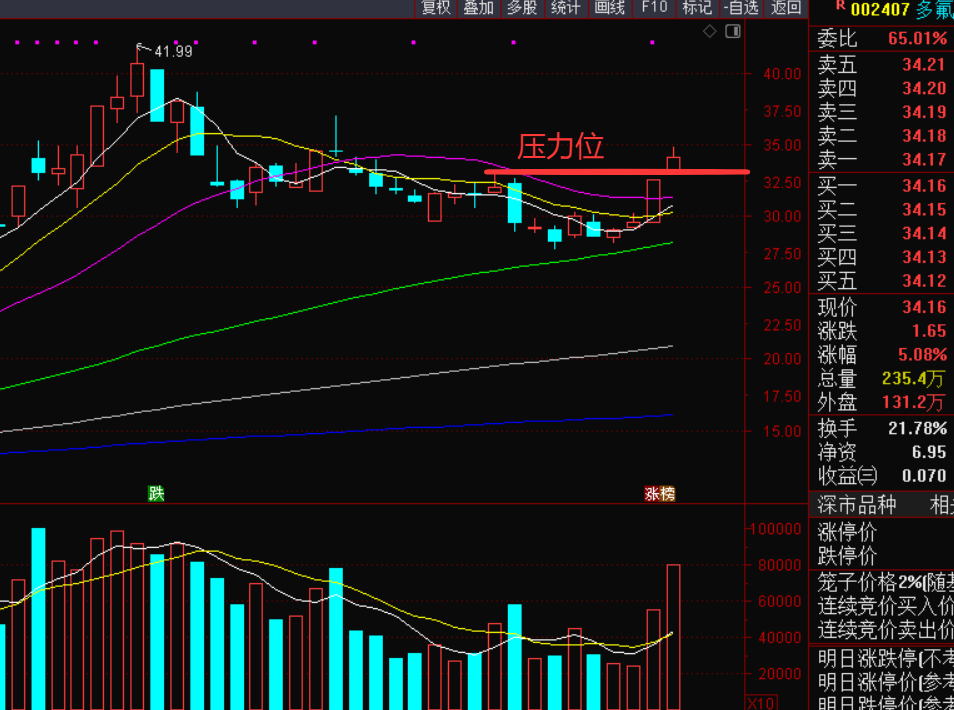 $多氟多(SZ002407)$:同样是氟涨价概念,昨天一根放量涨停阳线今天又一根高开放量的阳线,目前已经突破左侧压力位,有望结束最近一个多月的洗盘走出第二波日线上涨行情,这票也同样是机构票,后续考虑低吸,其实氟概念这个题材不少核心股最近都有洗盘结束的信号,包括天赐材料等在内的都有同样的信号。