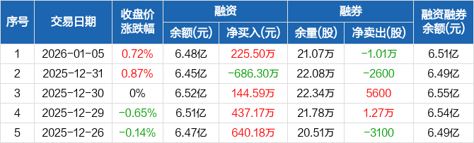 浙江医药:融资净买入225.5万元,融资余额6.48亿元(01-05)
