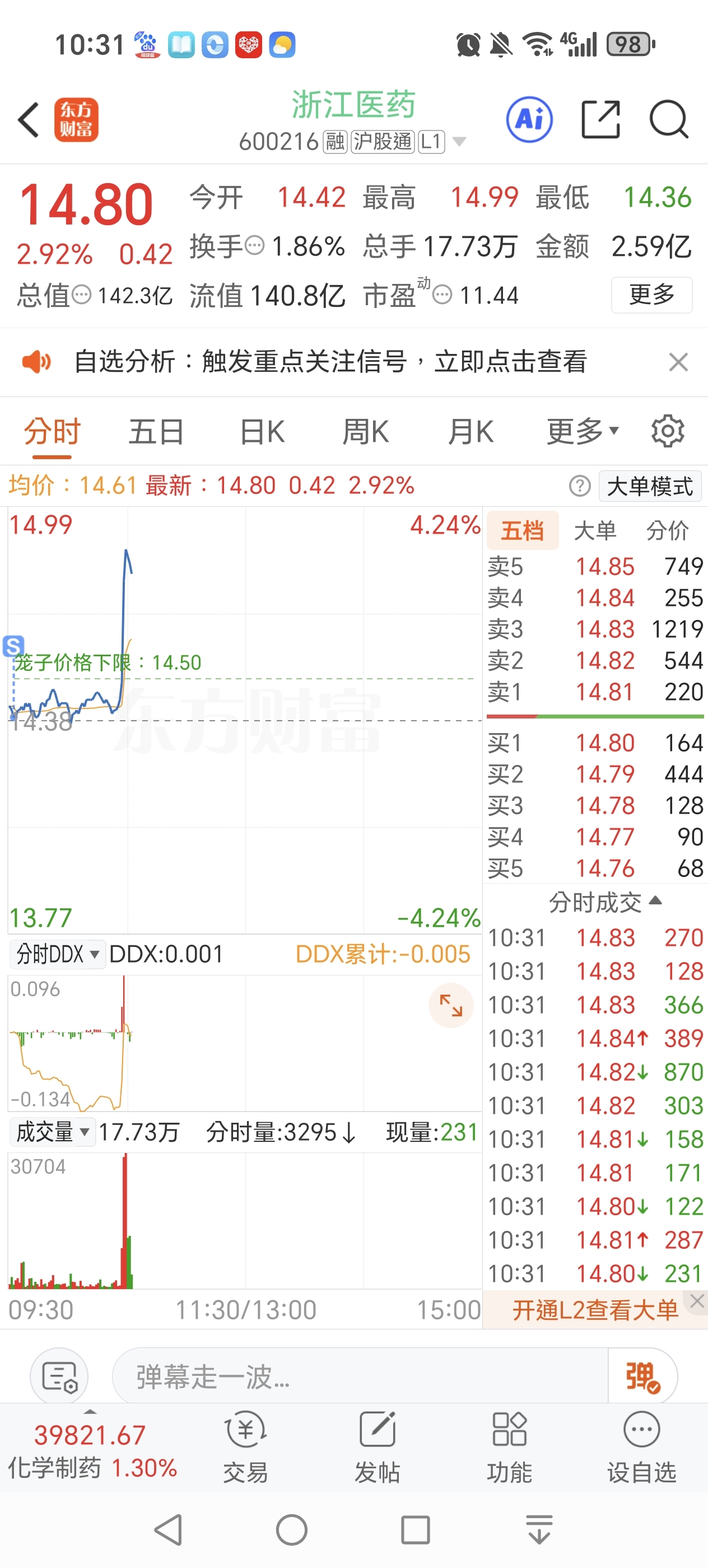 $浙江医药(SH600216)$ 拿着就不涨,割了你就拉,双击666老铁