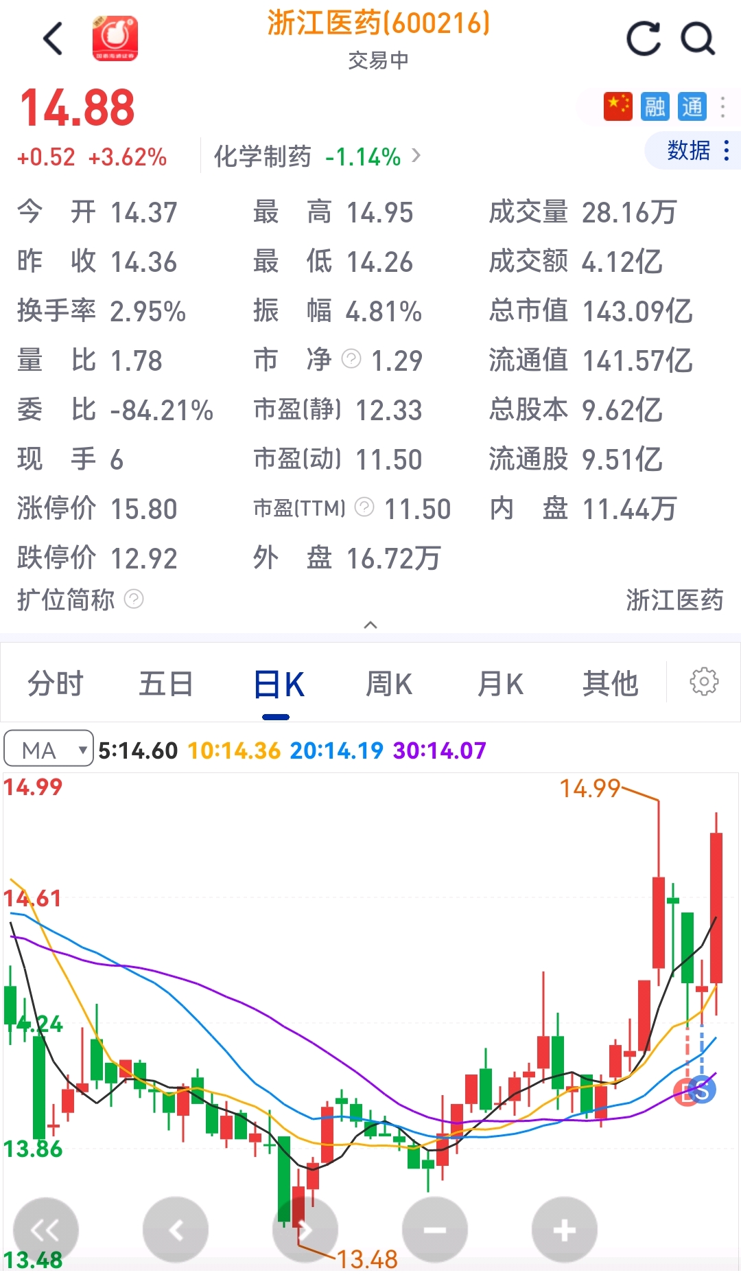 $浙江医药(SH600216)$ 你女未的