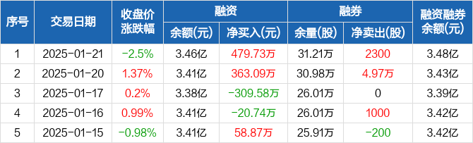 中再资环:融资净买入479.73万元,融资余额3.46亿元(01-21)