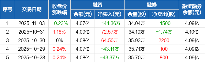 中再资环:融资净偿还144.36万元,融资余额4.07亿元(11-03)