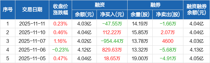中再资环:融资净偿还47.55万元,融资余额4.03亿元(11-11)