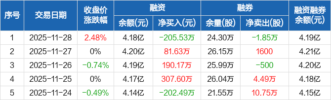 中再资环:融资净偿还205.53万元,融资余额4.18亿元(11-28)