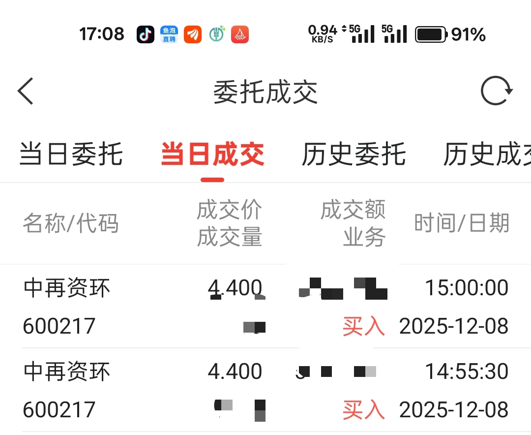 $中再资环(SH600217)$ 最后两分钟买一次,集合竞价又买一次,明天能赚点跑不?