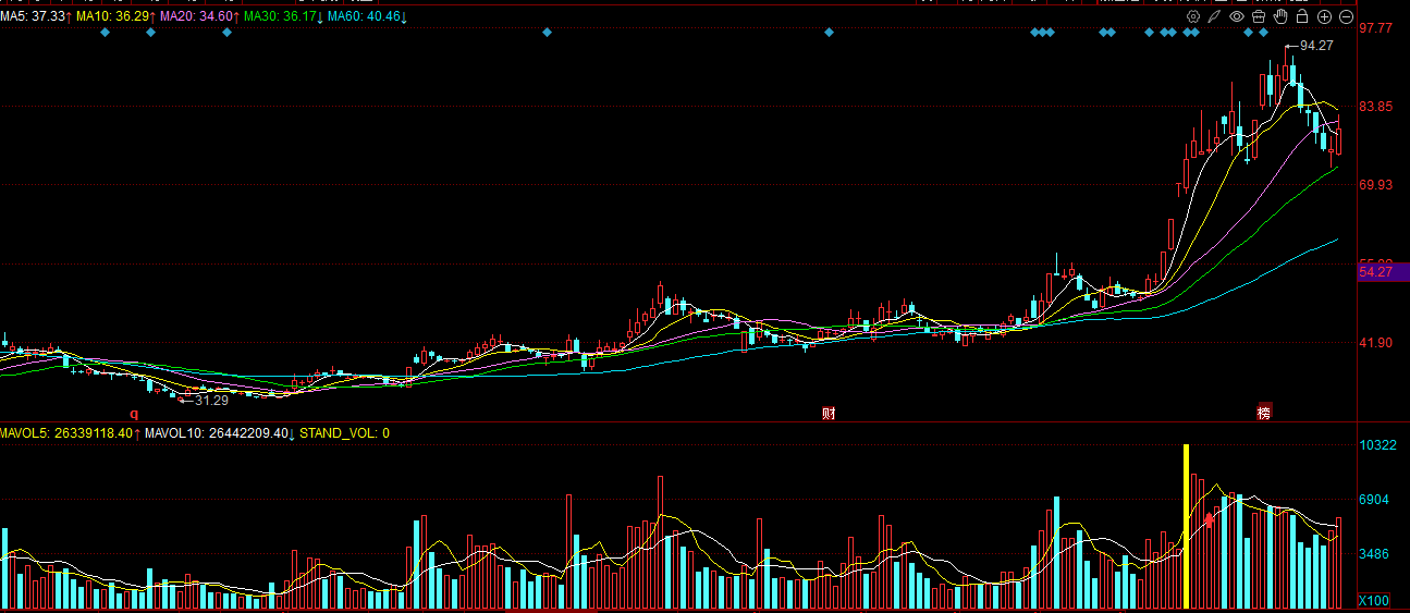 宏和科技603256:公司直接受益于 AI 芯片与消费电子刚性需求,半导体芯片在昨天虽然出现了明显的调整,但是宏和科技还是表现的韧性十足,虽然是冲高回落,但是短期来看更像是洗盘的动作。今天只要能够守住下方五日线的支撑能够放量还是有望来阳线反包的。上周创了历史新高之后,现在整体的趋势仍然还是向上的,量在价线,只要能够放量,还是有望延续强势的表现。