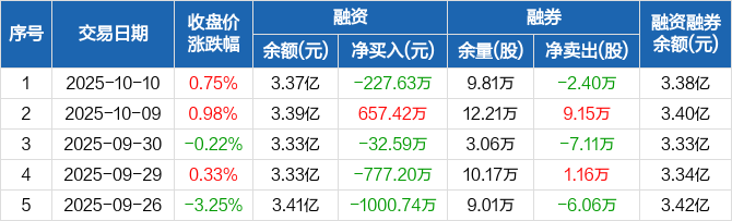 全柴动力:融资净偿还227.63万元,融资余额3.37亿元(10-10)
