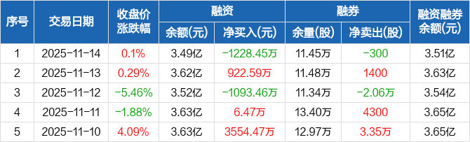 全柴动力:融资净偿还1228.45万元,融资余额3.49亿元(11-14)