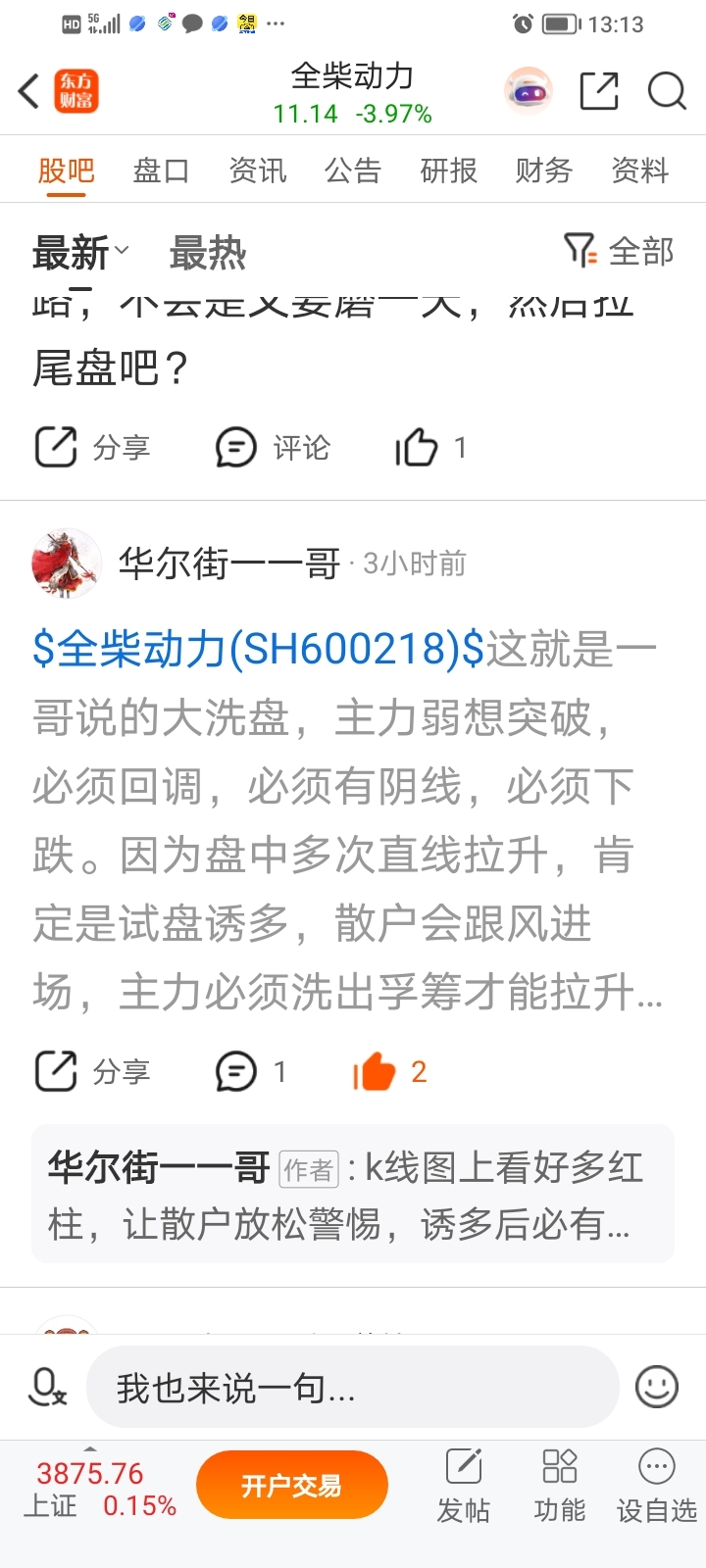 $全柴动力(SH600218)$ 完全按照一哥的预测走出的。