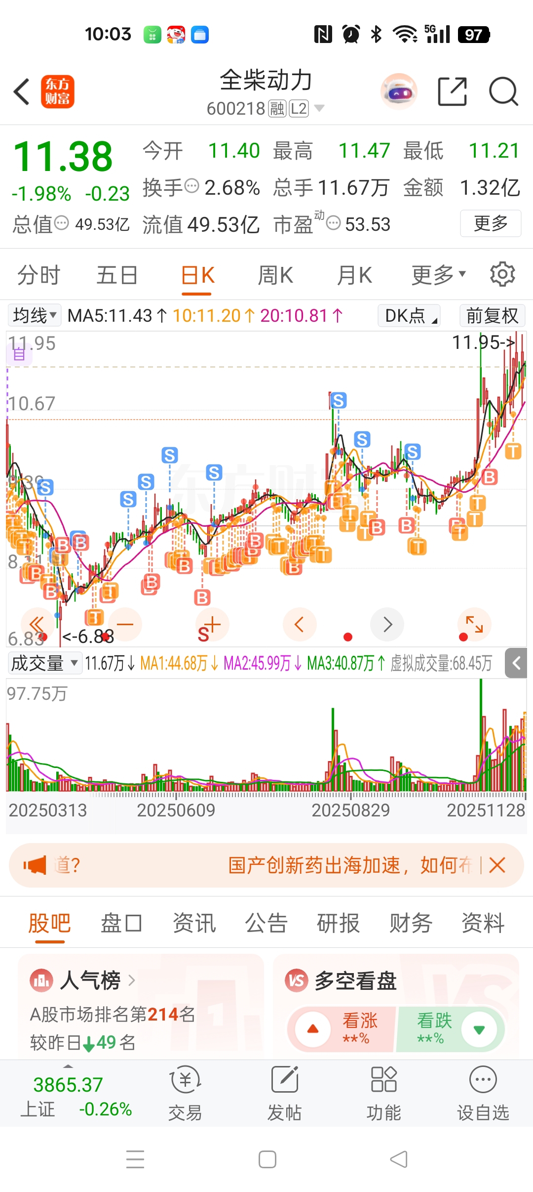 $全柴动力(SH600218)$ 使劲洗我看看怎么个事