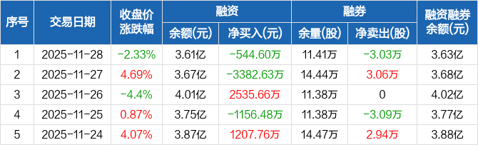 全柴动力:融资净偿还544.6万元,融资余额3.61亿元(11-28)
