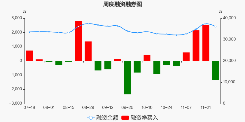 全柴动力本周(2025/11/24-2025/11/28)累计涨幅达2.62%,截至11月28日最新股价报收11.34元。从增量上来看,11月24日至11月28日融资买入交易规模3.53亿元,融资偿还规模3.67亿元,期内融资净偿还1340.29万元。从存量上来看,截止11月30日,全柴动力融资融券余额3.63亿元,其中融资余额规模3.61亿元,融券余额规模129.39万元。