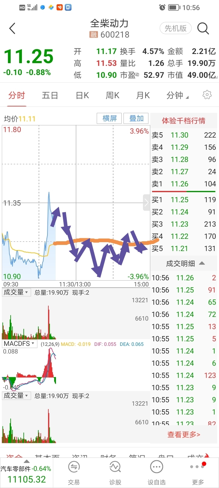 $全柴动力(SH600218)$ 一哥观点:全柴又是一波急拉,伴随的大概率就是慢跌回起拉点,今日会围绕盘中黄色均价线震荡。主力需要k线做图,macd绿色柱体本周势在必行,至少绿三根。
