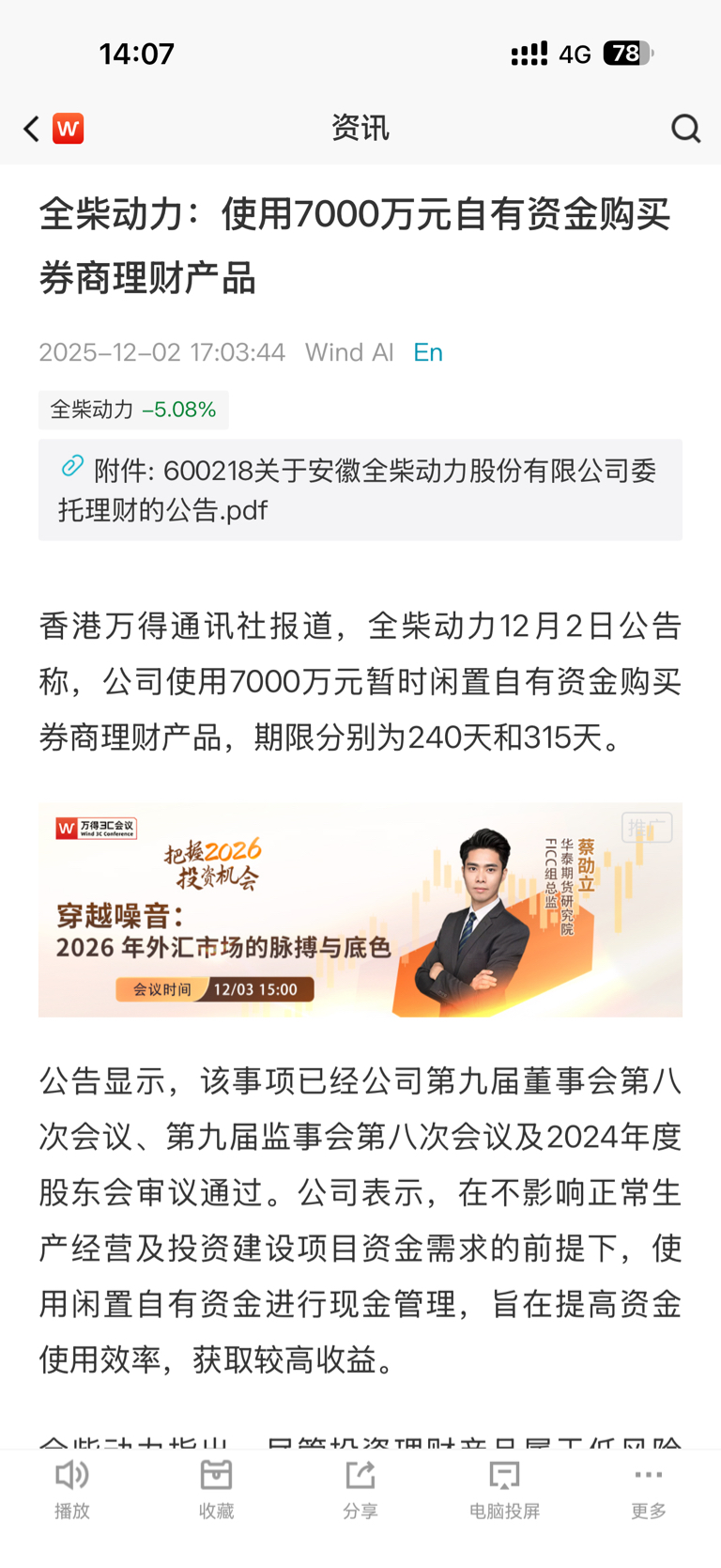 $全柴动力(SH600218)$ 把自己的股票卖给散户,套现7000w用来买股票