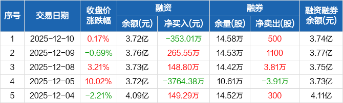 全柴动力:融资净偿还353.01万元,融资余额3.72亿元(12-10)