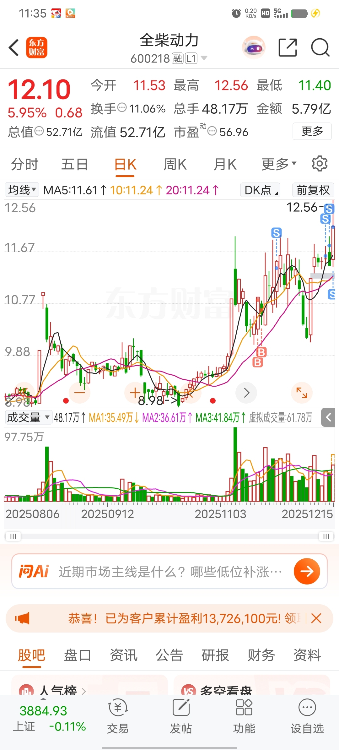 $全柴动力(SH600218)$ 跑了,留下的发财!!入袋为安