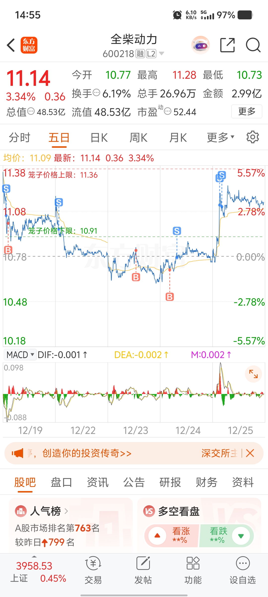 $全柴动力(SH600218)$ 不进来了祝大家发大财
