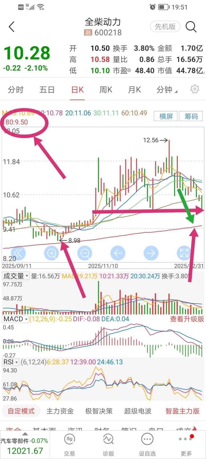 $全柴动力(SH600218)$ 一哥观点:没什么可犹豫的,要继续破位,大概率奔着9.5元180天均线去的,上次调整的支撑就是180线,手快的可以待明日又卖点先减仓,慢手就死拿熬着,但是不确定股价砸到9.5元会暴力反弹,可能还是反弹再找前低做双底,比较磨人。。。