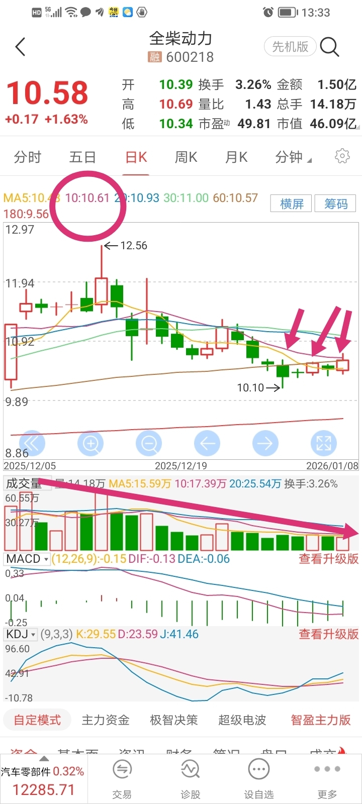 $全柴动力(SH600218)$ 一哥预判基本吻合,昨日没有触碰10日均线,今日盘中摸到10日均线,受到压制,这不是解套盘打压,是主力技术打压。量能依然没有放大。不过,即使明天再次下探,一哥观点会拉起来,小杨帆一波,macd已经走出缩短绿柱两天了。。。