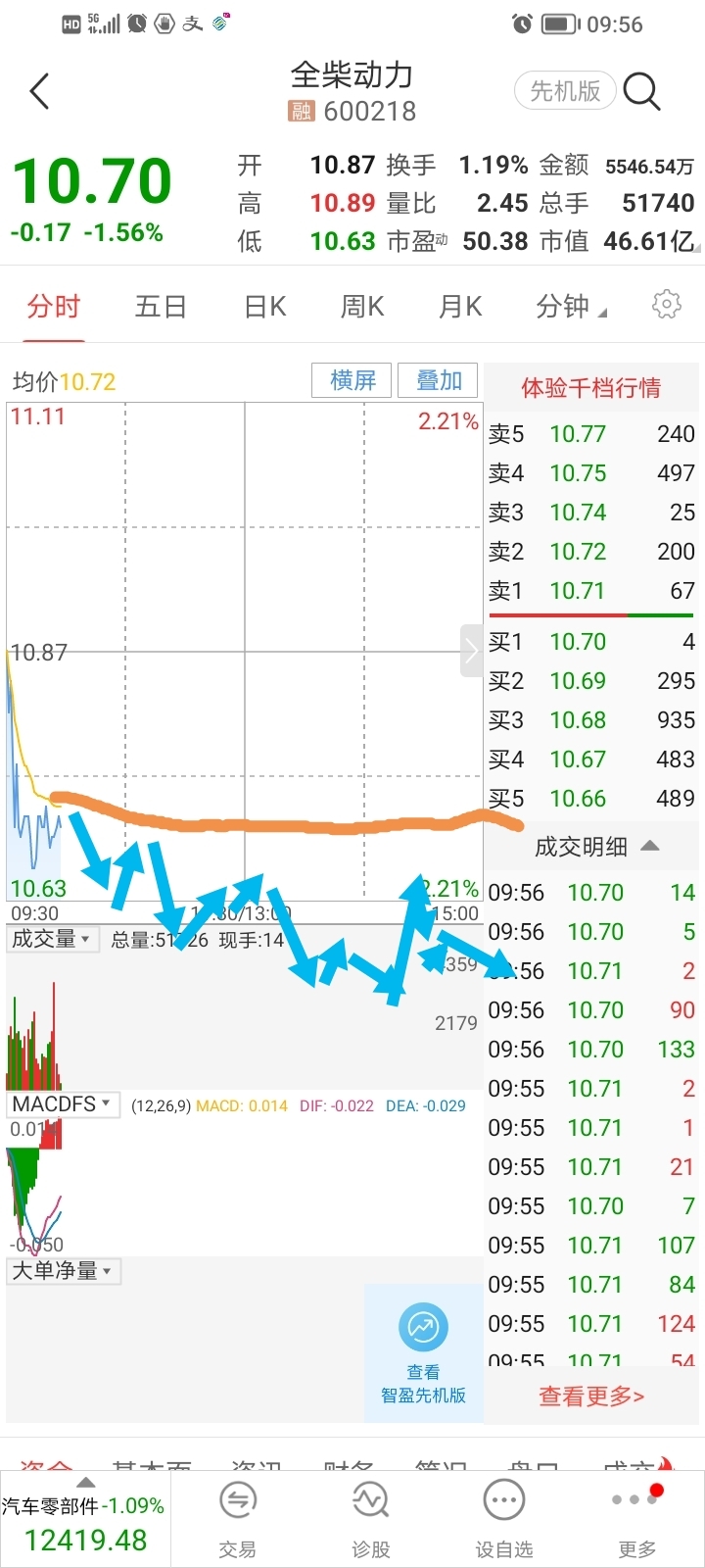 $全柴动力(SH600218)$ 黄色均价线下,下午有反抽动作。