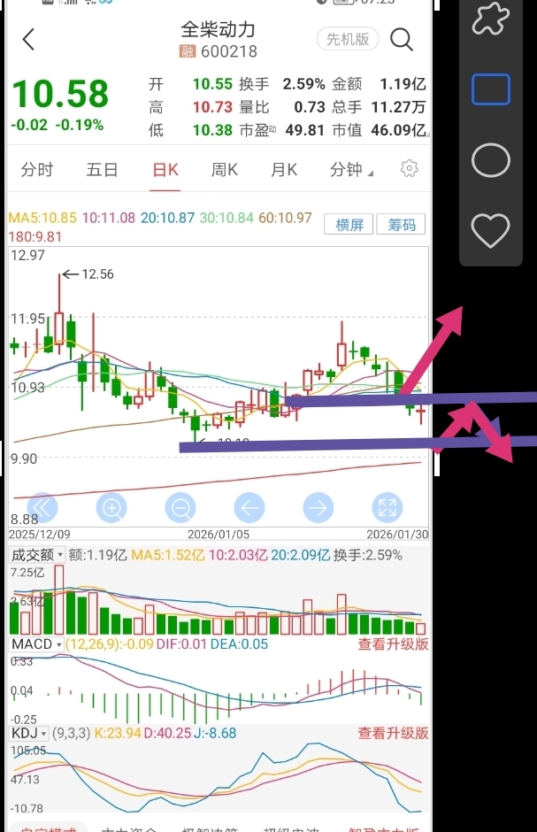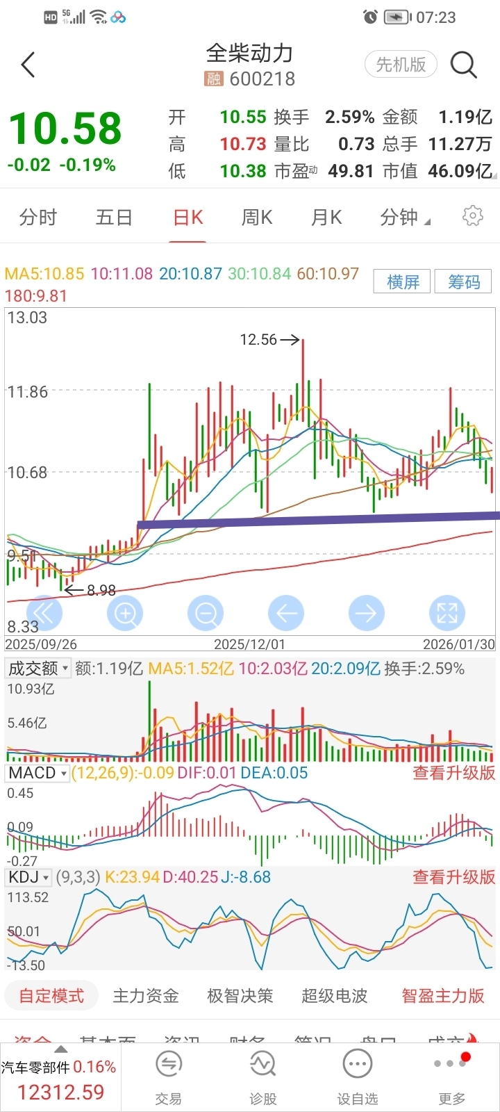 $全柴动力(SH600218)$ 有位给一哥留言的吧友说的对,这里只能等待新主力到来接盘,如果是吸筹做多,绝对不会回调如此深度。而应当在回落到第一次反弹高量处按住刹车键,如今破位第一条支撑线后,暂且只能看下面这条支撑线位置了。周五的下跌可能还不是底,不过仓位低的空仓的可以适当参与。macd绿柱没有释放完毕,再出价几根是最安全的。