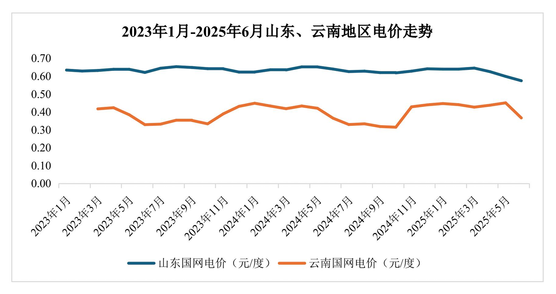 中国宏桥将合计396万吨电解铝产能从山东的火电基地分阶段向云南的水电基地搬迁置换,正是其战略眼光的最佳体现。数据显示,2024年其在云南的电力采购价格为0.40元/度,较山东的0.51元/度低了超过21%。且目前云南地区电价下行速度还超过山东地区。