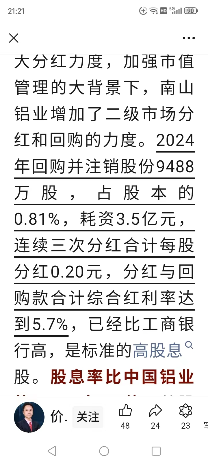 $南山铝业(SH600219)$ 红利大于工行年利率!