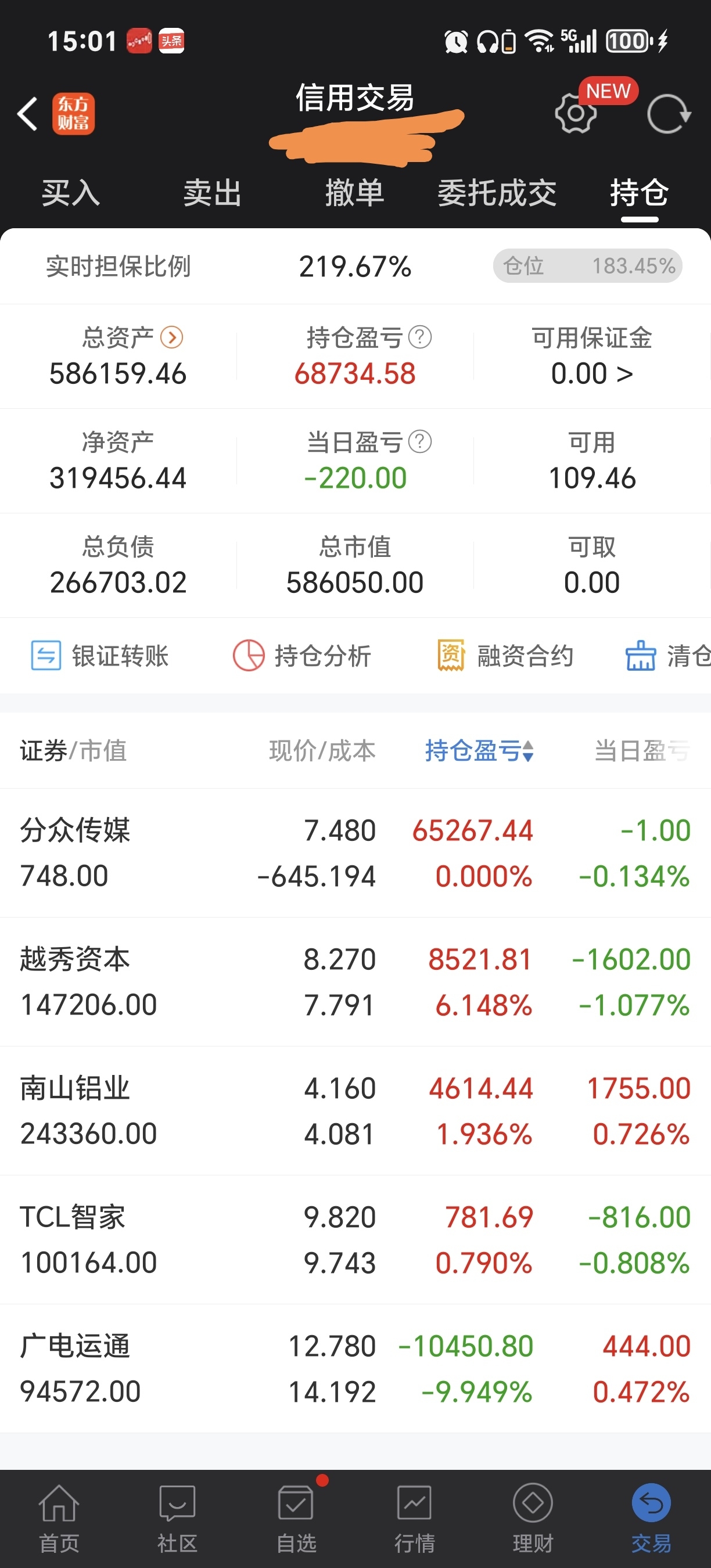 $南山铝业(SH600219)$ 今天亏钱了