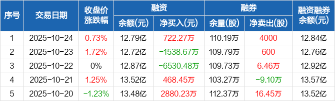 南山铝业:融资净买入722.27万元,融资余额12.79亿元(10-24)