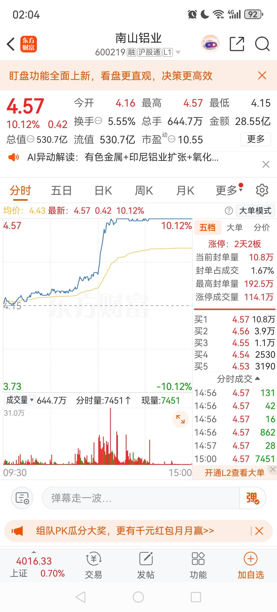 $南山铝业(SH600219)$ 今天首板为什么显示二天二板?是不是预示二板涨停?