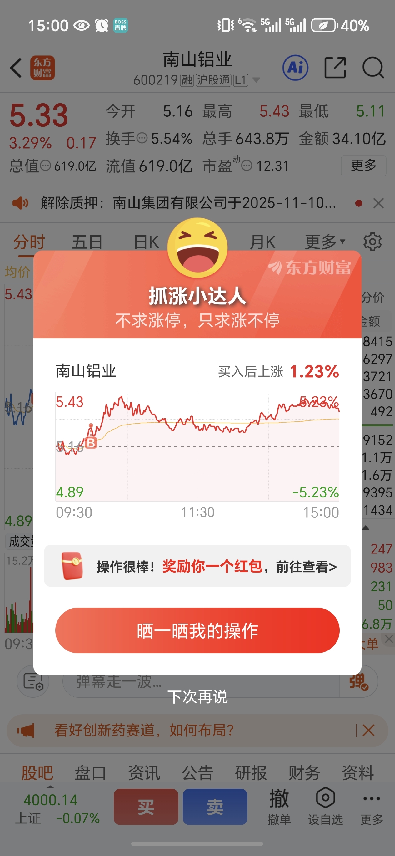 $南山铝业(SH600219)$ 破玩意,二选一买你个垃圾