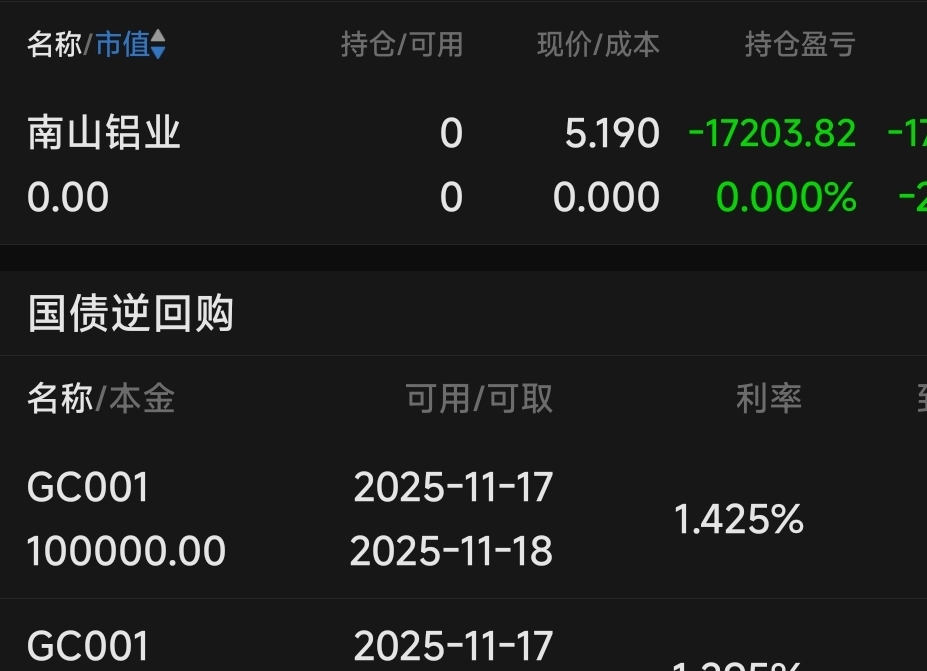 $南山铝业(SH600219)$ 下午清仓走人。买入国债逆回购。留下的发财。