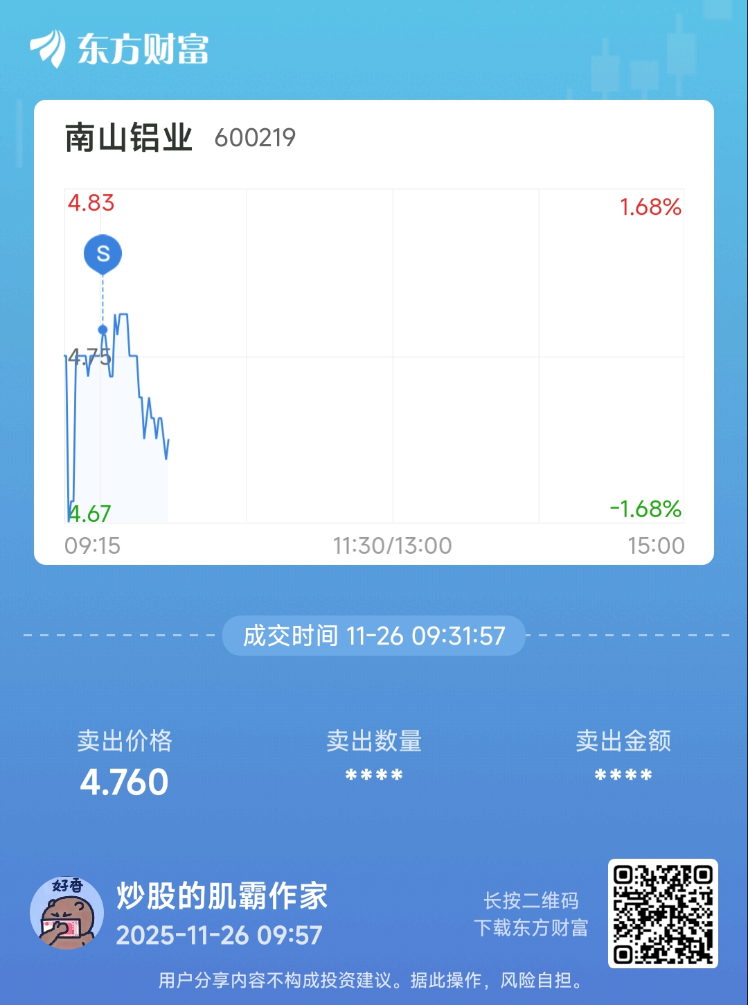 $南山铝业(SH600219)$ 卖了赚五块,没卖亏几百