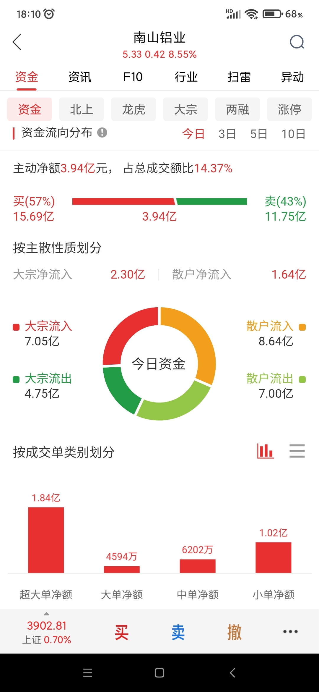 每个软件显示的资金流向都不一样,参考意义不大。大多数软件显示资金流入,东方财富软