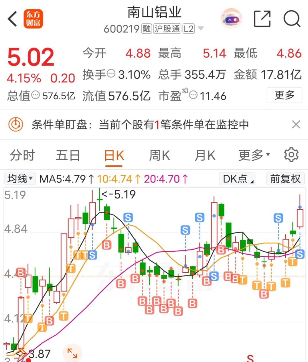 终于等到你,更坚定了长期持有的信心!!另外均价504分三次卖出去了六千股!南山必