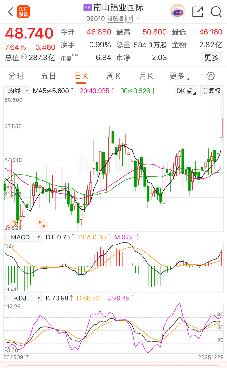 南山的矿产公司!港股圣诞节停牌后补涨!原材料价格有保证,主打高端铝制品!航空航天