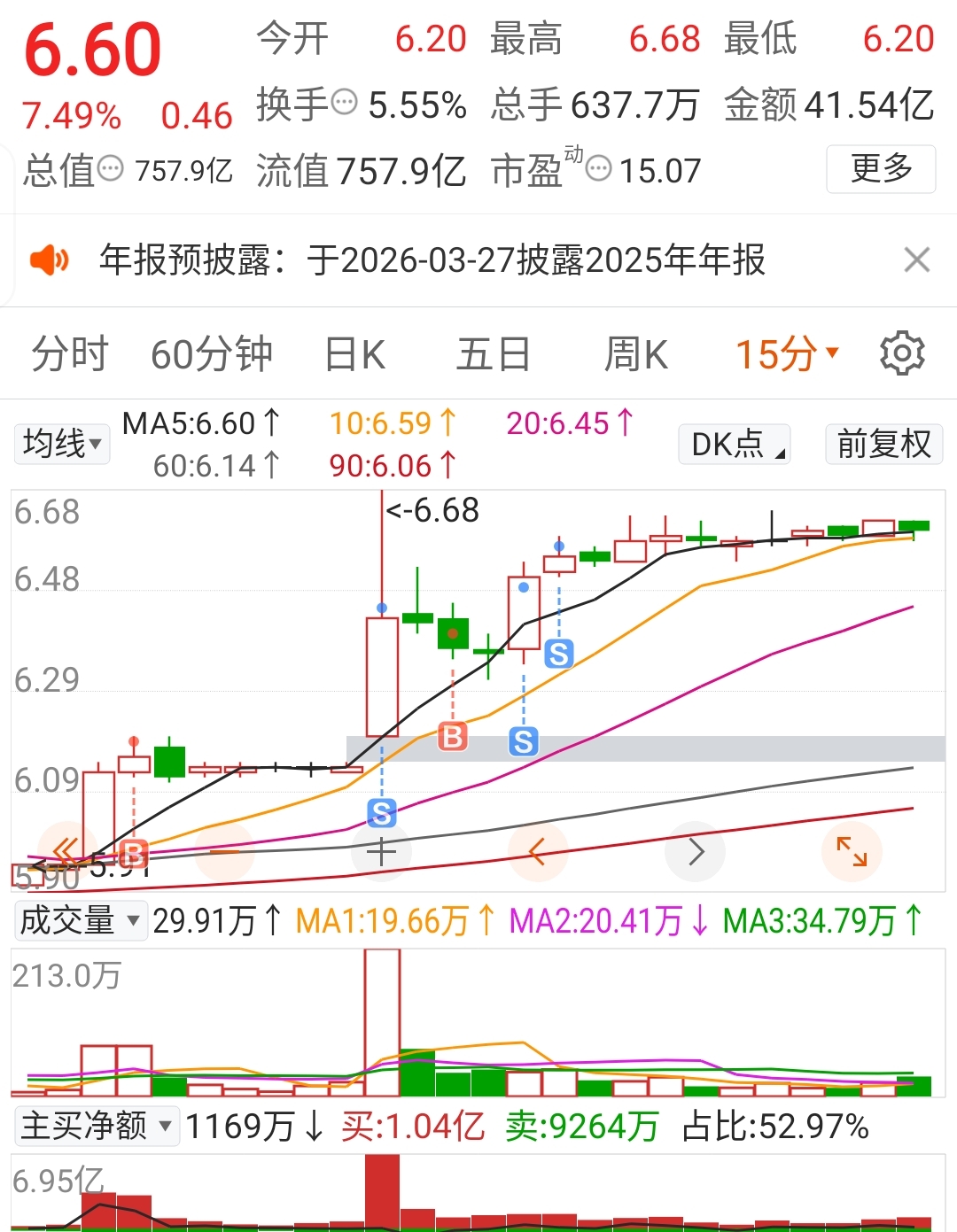 $南山铝业(SH600219)$ 昨天尾盘开仓,加上今天T,有时十个多点点的收益,明天看开盘回踩6.40,盘中缓慢冲高,6.80附近分批减仓,震荡以小阳小阴为预期