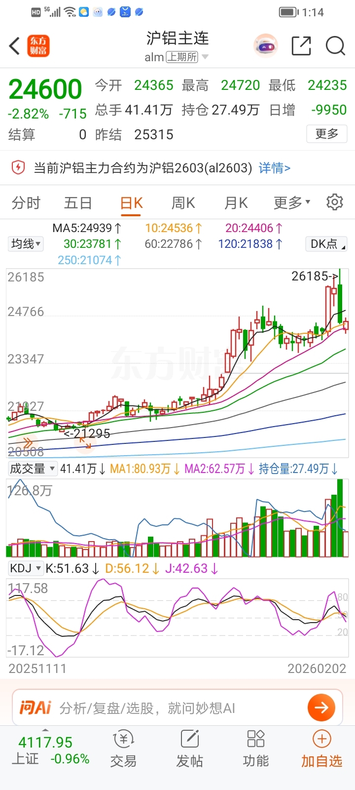 $南山铝业(SH600219)$  期货低开高走