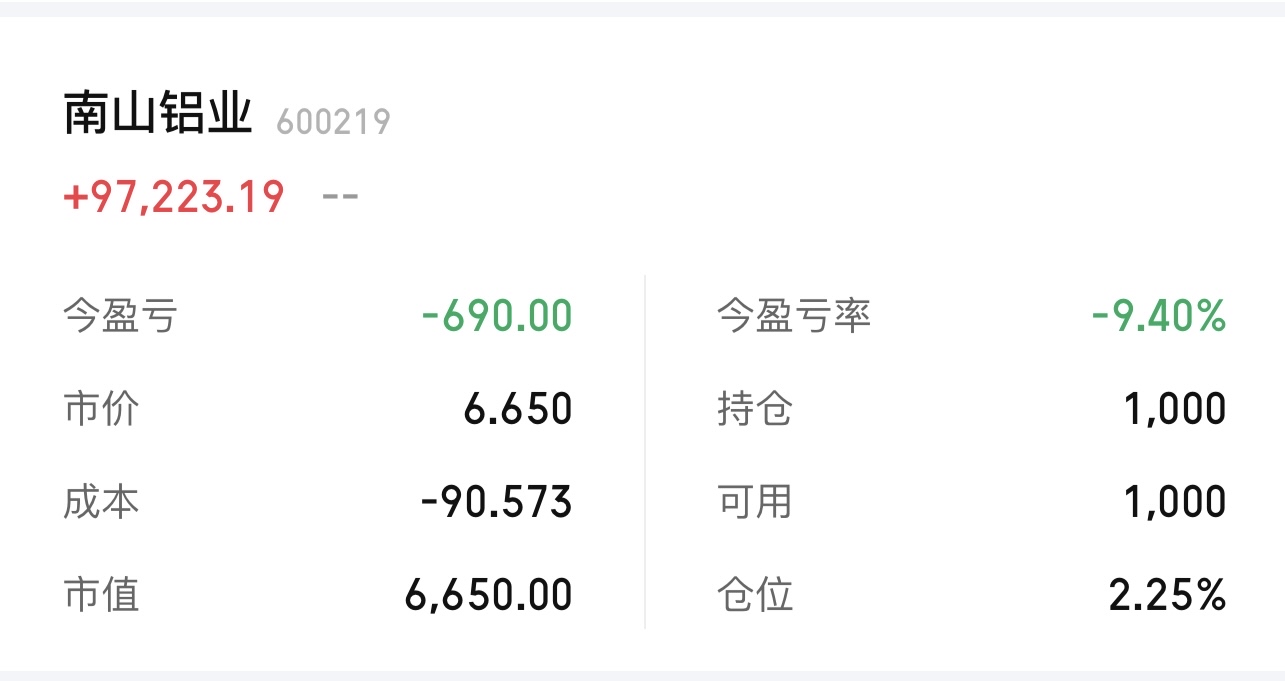 上周五7.35清仓的,只留了1000股。有色是周期股,短期内不准备接回了,留下的