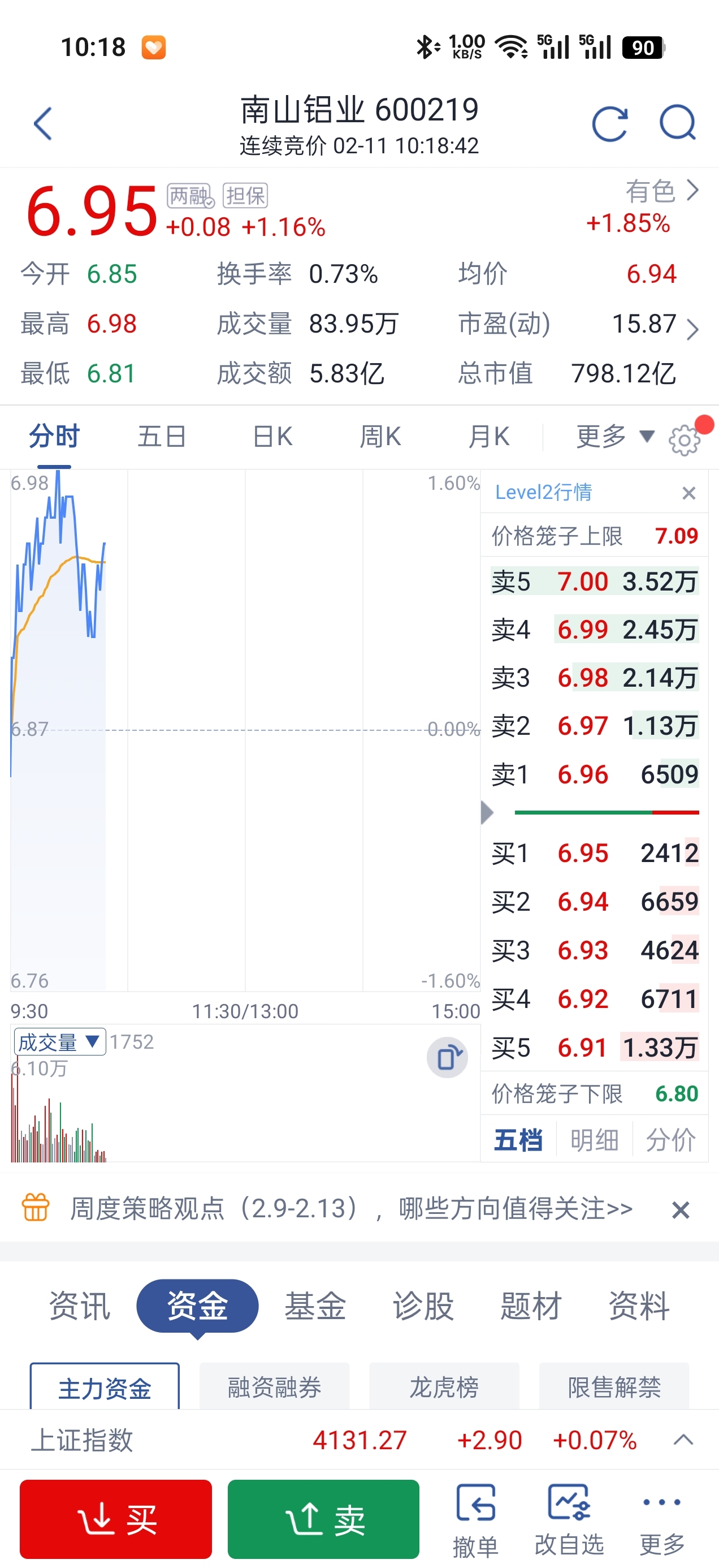 $南山铝业(SH600219)$ 八万手压着,七块是一道坎