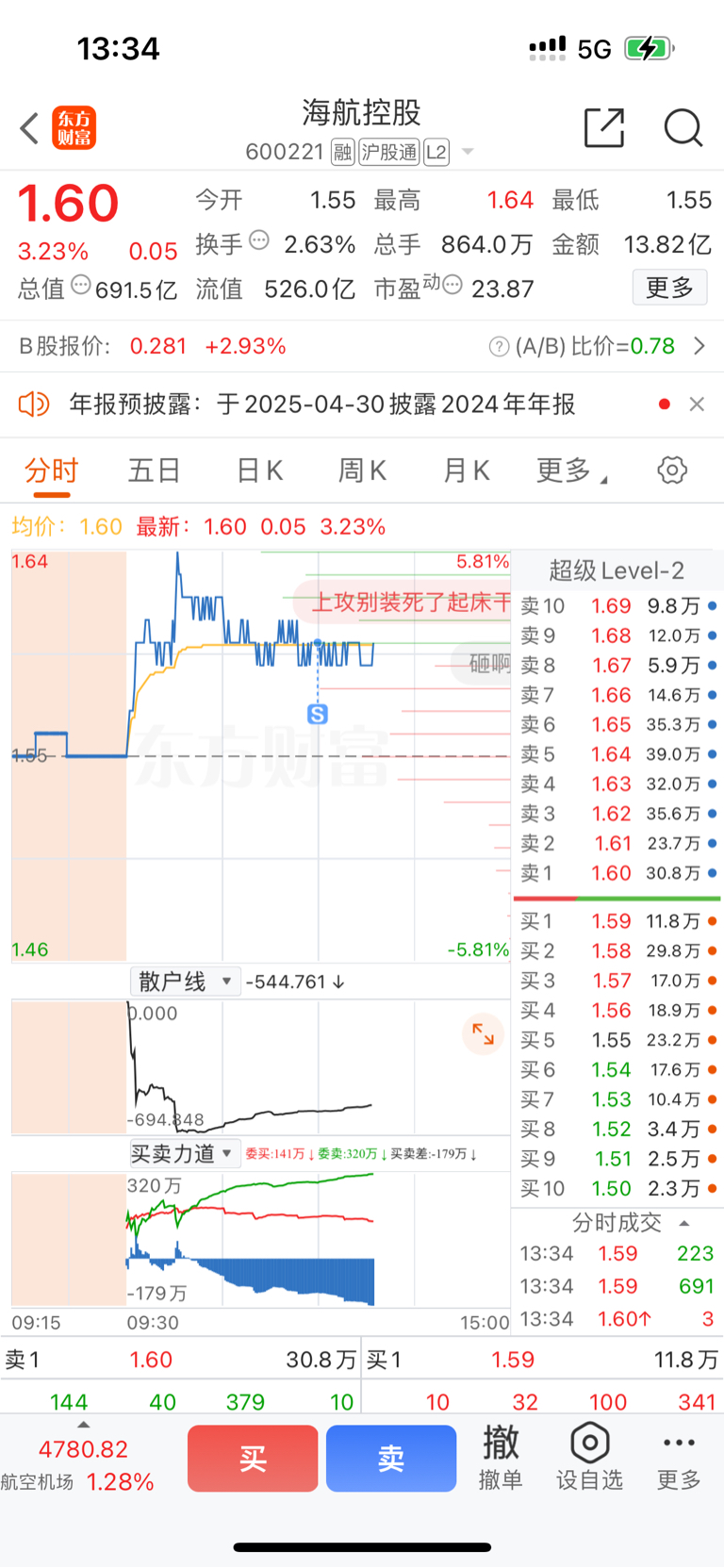 $海航控股(SH600221)$ 跑了,哎,你们发财