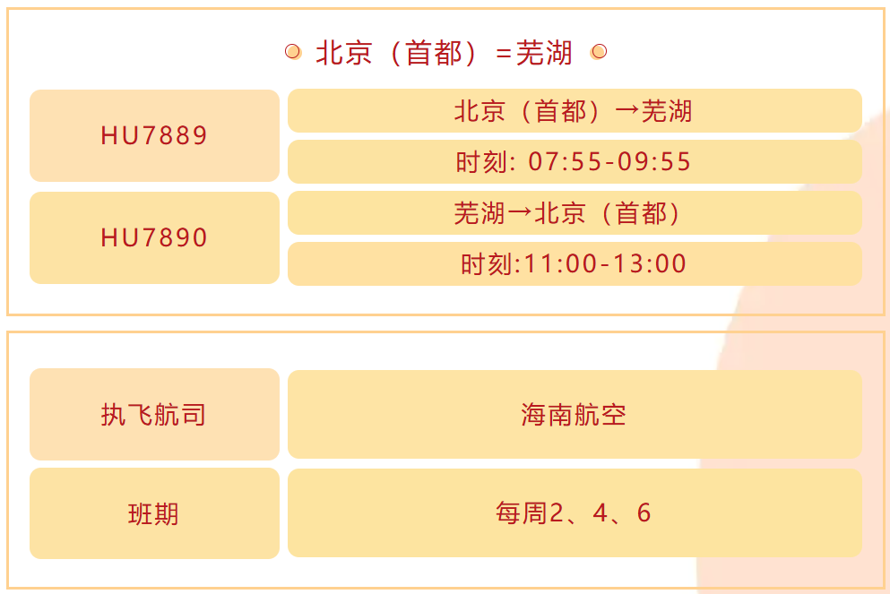 海航首开芜湖往返北京(首都)航班(10月26日开始)