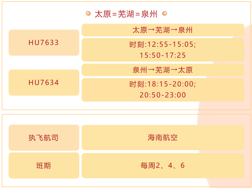 海航首开太原-芜湖-泉州航线(10月26日开始)
