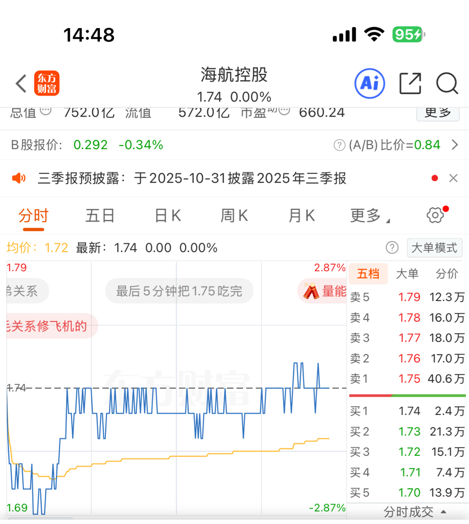 $海航控股(SH600221)$ 一包烟,一杯茶,一个破股看一天,