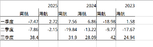 利好来了。24, 25年1到3季,南航海航单季利润相差不超10亿,南航三季单季利润38亿,海航正常估计应该有30亿左右,相比去年28亿应能同比增长。放到三季报,有望同比增长50%。悲观预估三季单季也有20亿以上。明天航空板块有望高开高走收大阳线,有1.6x的机会那真的闭眼冲了。