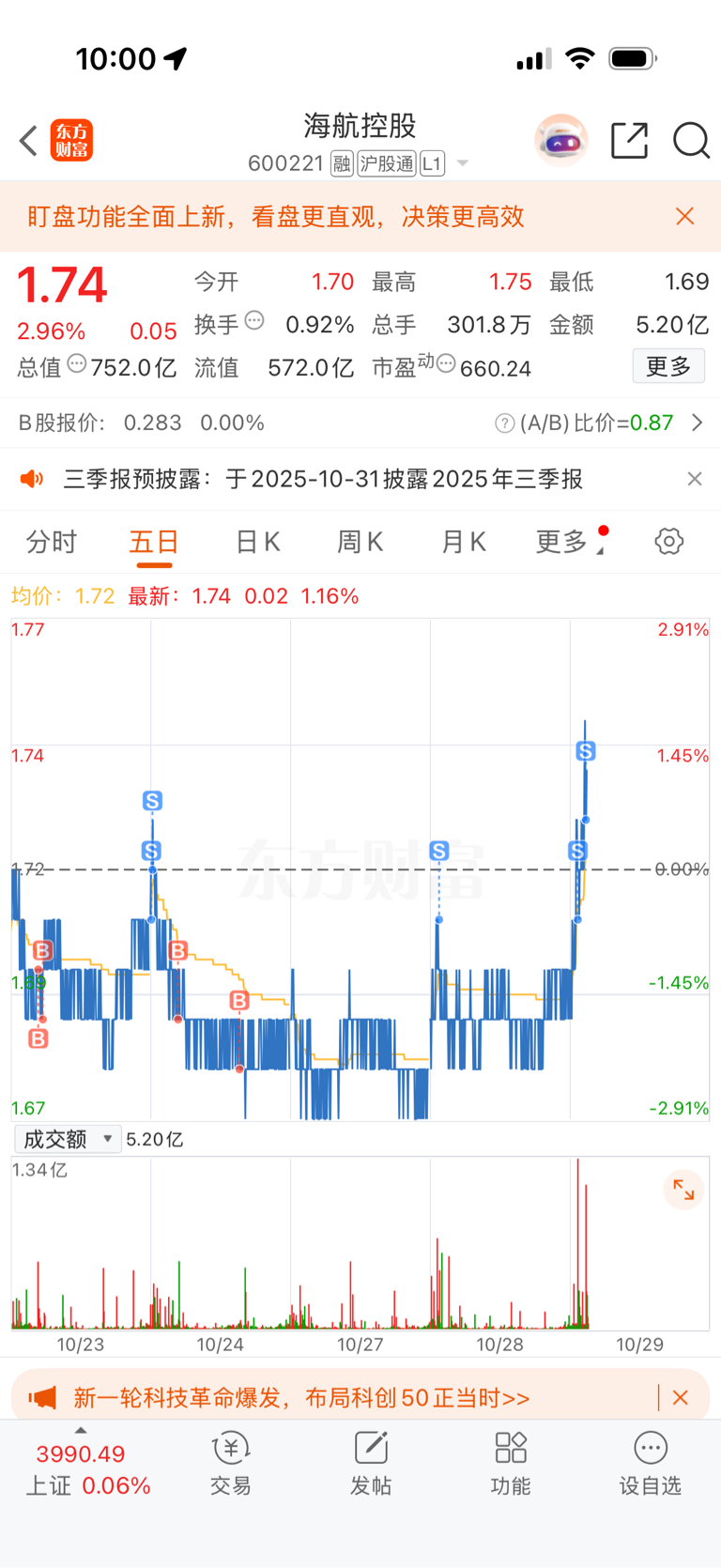 $海航控股(SH600221)$ 放心T,吃不饱也饿不死,不要幻想暴涨