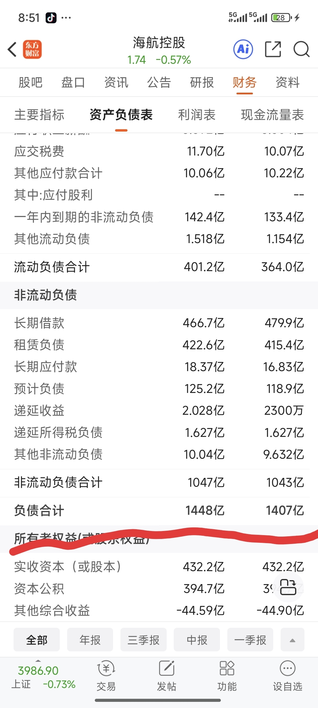 $海航控股(SH600221)$ 海航今年单独三季度净利润 其实还没有2024年单独的三季度净利润多,希望四季度有好转吧!负债太高了每年支付利息就要四十多亿,2024年报亏损9亿,海航加油