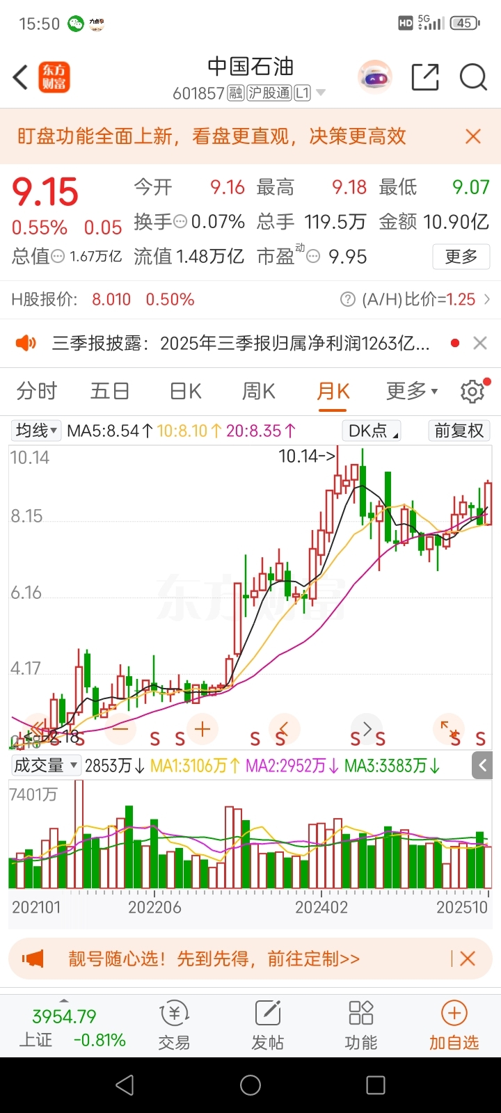 $海航控股(SH600221)$ 中国石油!一点四五万亿的市值。