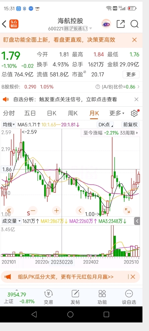 突破1.86双头平台。跨入2元时代!加油!多少年了!