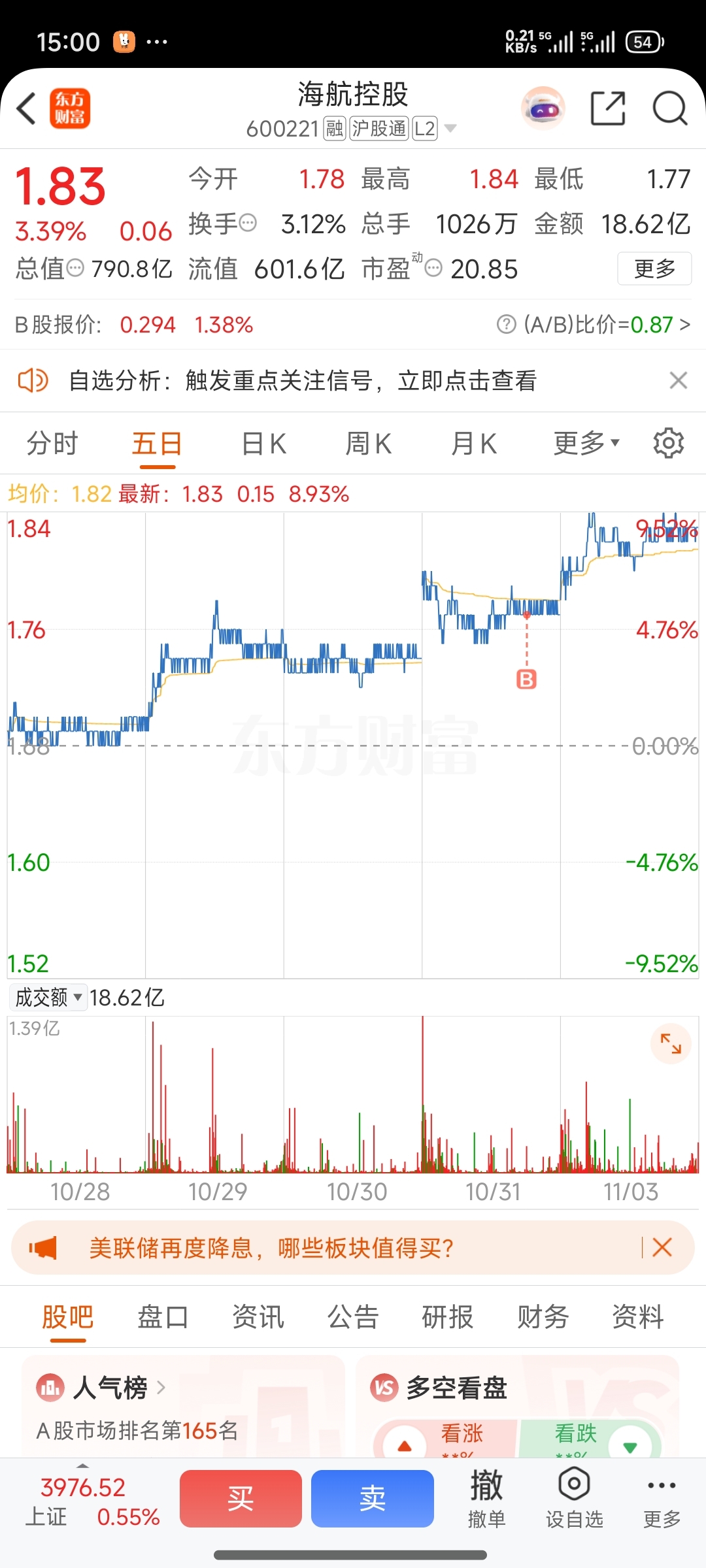 $海航控股(SH600221)$ 建个仓,这个星期应该会到1.9